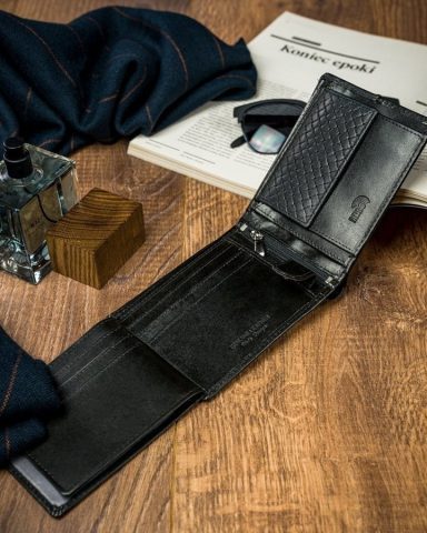 Czarny portfel męski skórzany Forever Young® z przeszyciem N992-PVT BLACK Oryginalny portfel męski w klasycznym, czarnym kolorze. Portfel o ciekawym, geometrycznym motywie imitującym grube przeszycie. Wielką zaletą jest wyposażenie w membranę RFID protect, chroniącą przed skimmingiem, czyli kradzieżą danych i środków z kart płatniczych i dokumentów. Portfel bez zapięcia. Po jego otwarciu mamy dostęp do […]