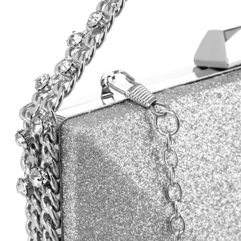 Brokatowy materiał i dodatkowe zdobienie w postaci cyrkonii na uchwytach. Torebka została zaprojektowana z myślą o eleganckich stylizacjach. Wraz z torebką otrzymasz odpinany srebrny łańcuszek. Wyposażona w wygodne i szybkie zatrzaskowe zapięcie.