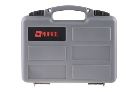 Walizka na pistolet Nuprol pistol case - szara Wykonana z wytrzymałego tworzywa sztucznego zamykana na dwa zatrzaski walizka na pistolet o wymiarach 310x205x80mm. W środku walizki zastosowano miękką piankę która umożliwia bezpieczny transport pistoletu.
