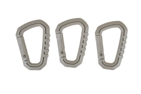 Zestaw 3 polimerowych karabinków Zestaw trzech uniwersalnych karabinków wykonanych z wytrzymałego tworzywa. Zamykany za pomocą prostego zatrzasku. Świetne zastępstwo dla klasycznych, metalowych karabinków, oraz dobre uzupełnienie kamizelki taktycznej, plecaka, etc.