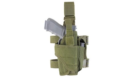 Uniwersalna kabura udowa Tornado Tactical na broń krótką cenionego producenta Condor. Kabura została wykonana z wytrzymałego poliestru o gęstości 1000D. Uniwersalna kabura posiada pełną regulację rozmiaru w pionie i poziomie. Pasuje do większości popularnych modeli pistoletów taki jak: M92, Glock, HK USP i podobne. Kabura posiada dodatkową ładownicę na zapasowy magazynek. Klamra z trokiem służy do […]