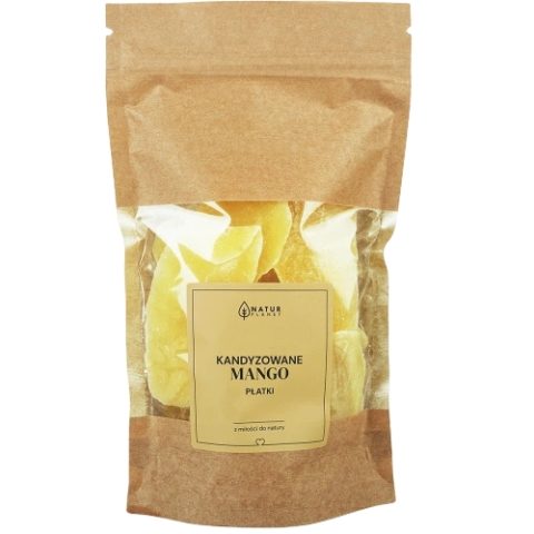 Mango kandyzowane płatki to smaczna, naturalnie słodka i zdrowa przekąska. Opakowanie zawiera staranie wyselekcjonowane kawałki mango – suszone i kandyzowane. Można je zjadać samodzielnie lub jako dodatek do musli lub różnych deserów.
