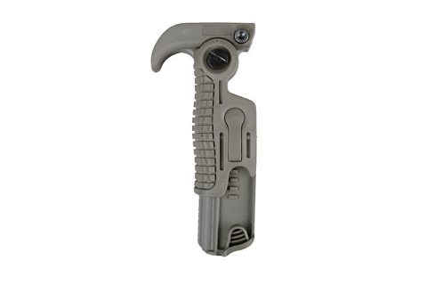 Składany chwyt przedni AB163 - foliage green Pionowy chwyt przedni wykonany z twardego tworzywa nylonowego oraz metalu. Profilowany, pokryty antypoślizgową fakturą. Długość chwytu można regulować, posiada także możliwość złożenia pod kątem 90 stopni. Pasuje do każdej broni/repliki wyposażonej w standardową szynę montażową RIS 22mm.