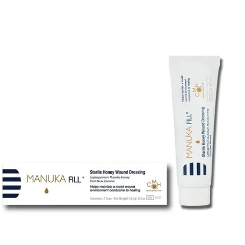 Manuka Fill sterylny medyczny miód Manuka na rany to wyrób medyczny, który pomaga utrzymać ranę w środowisku wilgotnym, w ten sposób wspiera autolityczne oczyszczenie tkanki martwiczej. Preparat wskazany np. w przypadku drobnych otarć i skaleczeń.