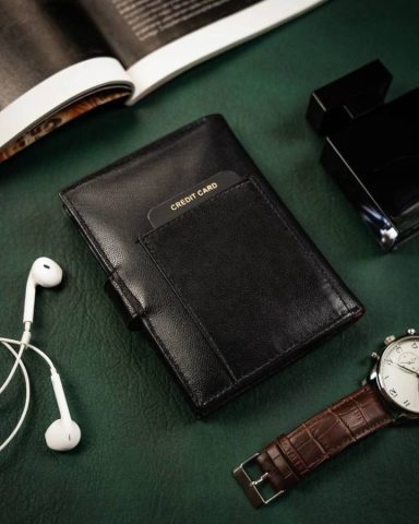 Portfel wykonany z wysokiej jakości skóry naturalnej. Model z zapięciem zewnętrznym w postaci klamerki na zatrzask. Bez problemu mieści karty i dokumenty, jak dowód osobisty czy prawo jazdy, ale też dokumenty o większym formacie. Wyposażony w system RFID.