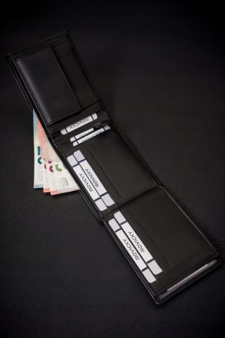 Portfel wykonany ze skóry ekologicznej został wyposażony w praktyczną czarną podszewkę. Model w czarnym kolorze. Znajdziesz w nim dużą ilość przegródek na wszystkie karty i dokumenty. Portfel bez zapięcia zewnętrznego.