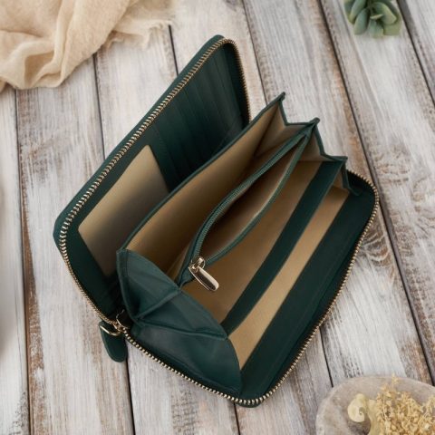 Klasyczny, elegancki portfel damski został wykonany z wysokojakościowej, gładkiej skóry naturalnej o podwyższonej wytrzymałości. Łatwy w czyszczeniu, doskonale sprawdzi się jako dodatek na co dzień w damskiej torebce. W Paolo Peruzzi szczegóły mają znaczenie, dlatego modelu AV-05 zastosowano solidny, metalowy suwak, odpinający się delikatnie. Wnętrze portfela jest rozbudowane i odpowiednie dla kobiet o dużych wymaganiach. W pierwszej sekcji umieszczono 6 krótkich przegródek na karty, 1 kieszonkę transparentną na zdjęcia oraz 3 przegrody […]