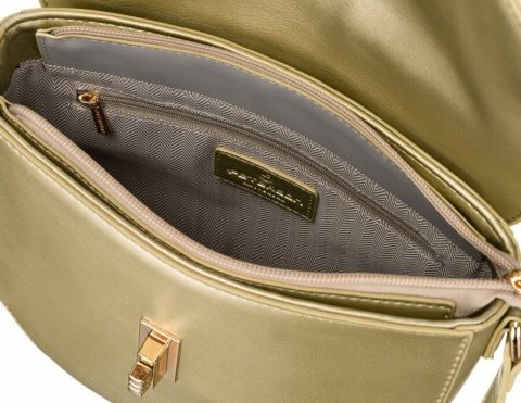 Odszyta z wysokogatunkowej skóry ekologicznej. Torebka zamykana klapką z zapięciem obrotowym i zamkiem błyskawicznym. Wyposażona w 2 kieszenie wewnętrzne i 1 zewnętrzną. Środek na podszewce. Listonoszka zawieszona na długim, regulowanym pasku.