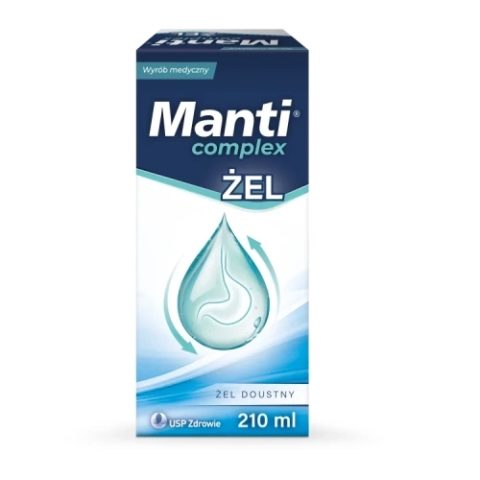 Manti Complex żel to wyrób medyczny przeznaczony do stosowania jako wsparcie w objawowym leczeniu stanów związanych z refluksem żołądkowo-przełykowym u niemowląt, dzieci i dorosłych. Preparat ma postać żelu doustnego o smaku coli i limonki.