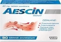 Wskazaniami do stosowania tabletek Aescin jest zapobieganie i leczenie obrzęków, krwiaków pourazowych, i pooperacyjnych, zaburzenia krążenia żylnego w kończynach dolnych, żylaki kończyn dolnych, bóle kręgosłupa.