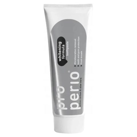 Pro Perio Whitening Formuła Pasta do mycia zębów z formułą wybielającą Active Carbon & Aloe vera to preparat, który pozwala utrzymać prawidłową higienę jamy ustnej, dodatkowo w delikatny sposób usuwa przebarwienia związane m.in. z piciem kawy i wina.