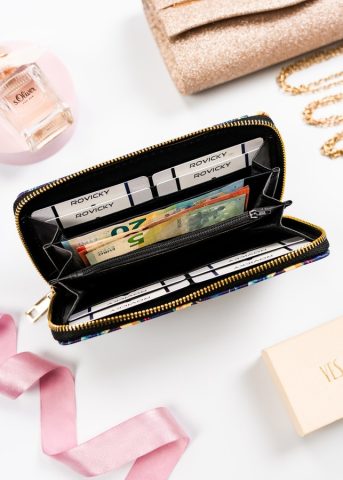 Portfel został wykonany ze skóry ekologicznej. Model z dużą ilością przegródek zaprojektowano niezwykle intuicyjnie i funkcjonalnie. Posiada śliczne, roślinne zdobienie. Portfel został wyposażony w wygodny zamek błyskawiczny.