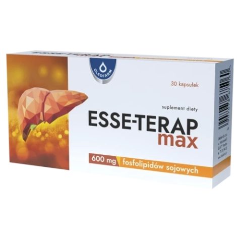 Suplement diety Esse-Terap Max przeznaczony jest do stosowania w celu uzupełnienia codziennej diety osób dorosłych w dobroczynne fosfolipidy sojowe, w tym w cholinę i fosfatydylocholinę. Jedna kapsułka zawiera 600mg fosfolipidów sojowych.