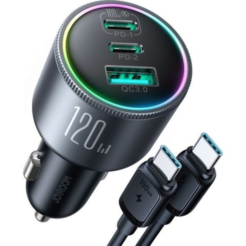 Ładowarka samochodowa Joyroom JR-CCN07 120W, 2x USB-C, 1x USB-A, QC 3.0, PD 3.0, AFC, FCP, PPS + kabel USB-C 100W 1.2m, ciemnoszara Opinie