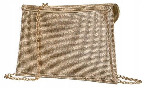 Wyjątkowo elegancki design, zdobiony lśniącymi cyrkoniami. Torebka wykonana jest z wysokiej jakości syntetycznego materiału, który gwarantuje trwałość oraz estetyczny wygląd na długie lata. Torebka na złotym łańcuszku.
