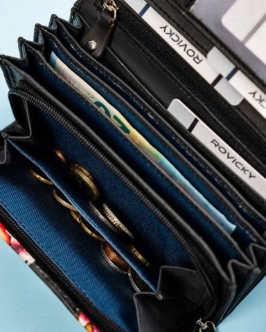 Portfel został odszyty ze specjalnie wyselekcjonowanej skóry naturalnej. Dzięki ogromnej liczbie kieszonek i przegródek portfel pomieści wszystkie Twoje karty i dokumenty. Wyposażony w system RFID.