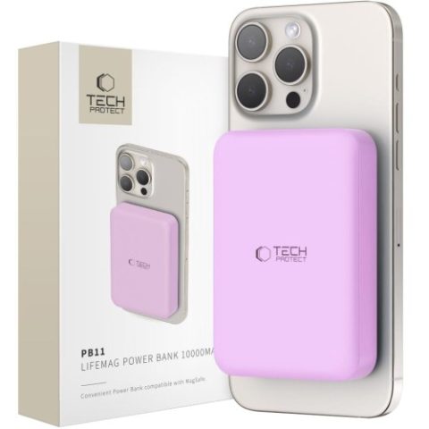 Powerbank z ładowaniem indukcyjnym 10000mAh 15W + kabel USB-C 0.5m, Tech-Protect PB11 Lifemag, fioletowy Opinie