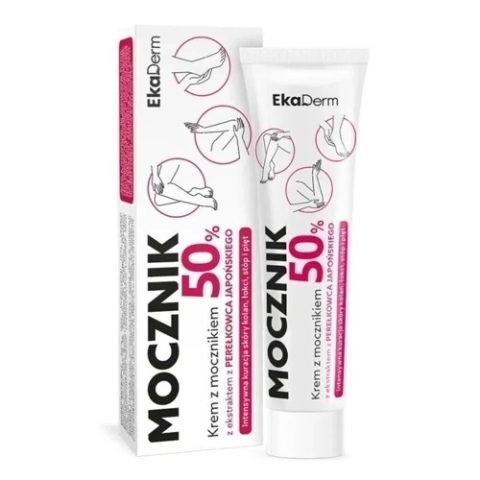 EkaDerm Mocznik 50% Krem z mocznikiem to preparat do stosowania jako intensywna kuracja nawilżająco-zmiękczająca do skóry przesuszonej i nadmiernie zrogowaciałej. Krem działa zmiękczająco i skutecznie poprawia kondycję skóry pięt, łokci oraz kolan.