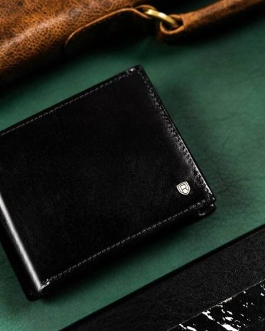 Portfel ze skóry naturalnej. Model w orientacji poziomej bez zapięcia zewnętrznego. Mieści karty i dokumenty jak dowód osobisty czy prawo jazdy, ale też dokumenty o większym formacie. Wyposażony w technologię RFID.
