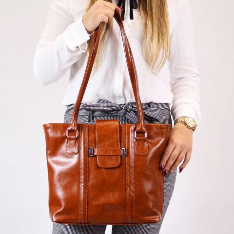 Skórzana torebka damska w kolorze camel, renomowanego polskiego producenta, marki DAN-A. Wzór stworzony dla kobiety eleganckiej, ceniącej sobie klasykę. Wymiary: 29 x 30 x 10 cm.