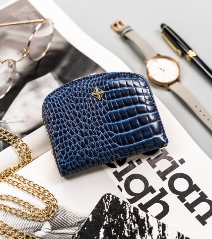 Uszyty ze skóry ekologicznej imitującą skórę krokodyla. Elegancki fason dopełniony złotymi okuciami. Portfel niewielkich rozmiarów, który z powodzeniem przechowasz w kieszeni czy też małych listonoszkach i kopertówkach.