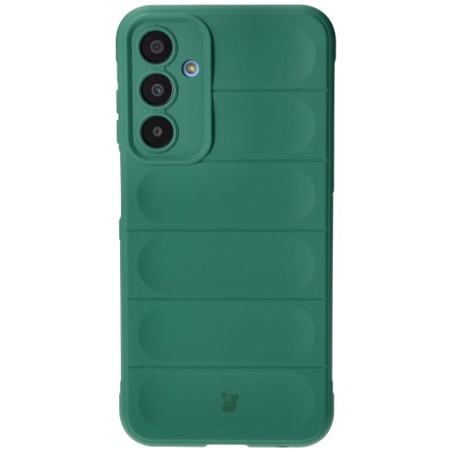 Etui Bizon Case TurSamsung Galaxy A25 5G Pancerne etui do Samsung Galaxy A25 5GTury leśne zniknęły z powierzchni Ziemi niemal cztery wieki temu. Teraz powracają w zupełnie innej formie!Wyjątkowe etui marki Bizon z serii Tur to ukłon w stronę tego majestatycznego zwierzęcia, niegdyś poddanemu królewskiej ochronie, którą dziś Tur otoczy Twojego smartfona.Kolor producenta: Dark Green (ciemnozielony)Etui kompatybilne ze szkłami* o wymiarach mniejszych niż (dług./szer.): 15,82 x 7,47 cm* Przy doborze ochrony ekranu zwróć uwagę, aby szkło było mniejsze niż wymiary wewnętrzne pokrowca. Jeśli się wahasz, szkło Bizon Glass Clear jest bezpiecznym wyborem.Przedmiotem sprzedaży jest samo etui, pozostałe akcesoria widoczne na zdjęciach służą jedynie przedstawieniu jego funkcjonalności.Uwaga! W środku etui mogą znajdować się przebarwienia. Nie wpływają one na wygląd zewnętrzny obudowy. Wzmocniona ochronaObudowa została wykonana z elastycznego TPU o grubości 2 mm, wewnątrz którego kryje się delikatna warstwa z mikrofibry, która załagodzi impet uderzenia smartfona o twardą powierzchnię.Design etui nie tylko ciekawie wygląda — wyżłobienia pełnią funkcję niewidzialnych poduszek powietrznych! Tur bez mocnych rogów nie byłby turem, więc takie samo rozwiązanie zastosowano również w rogach futerału. Zdjęcie poglądowe, produkt może się różnić w zależności od modelu urządzenia Pewny chwytZdarza Ci się wypuszczać telefon z dłoni? Tur tak łatwo Ci nie ucieknie!Przywodzące na myśl opony samochodowe, teksturowane boki zapewniają lepszy chwyt, a gdyby urządzenie i tak upadło — tak jak kanapka, masłem w dół — to nie zderzy się bezpośrednio z podłogą, bo obudowa wystaje ponad krańce telefonu! Podwyższone krawędzie otaczają również wyspę aparatu, co w połączeniu z dedykowanymi wycięciami na soczewki stanowi solidną ochronę obiektywów.Zdjęcie poglądowe, produkt może się różnić w zależności od modelu urządzenia Swobodny dostępEtui jest idealnie dopasowane do telefonu, a niewielka grubość pozwala na indukcyjne ładowanie bez potrzeby ściągania obudowy (dotyczy modeli telefonów wyposażonych w tę funkcję). Pokrowiec posiada wszelkie niezbędne wycięcia, dzięki którym możesz cieszyć się pełnym dostępem do portów.Zdjęcie poglądowe, produkt może się różnić w zależności od modelu urządzenia