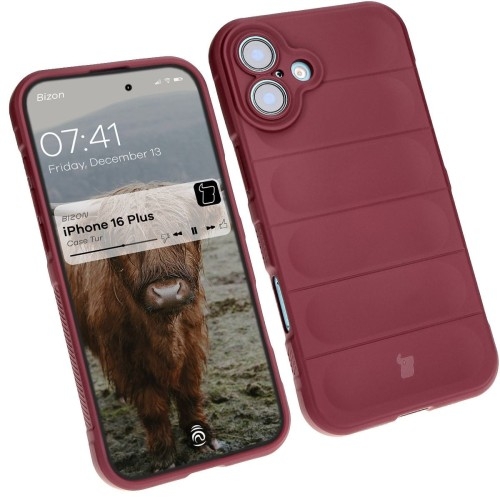 Etui Bizon Case TurApple iPhone 16 Plus Pancerne etui do Apple iPhone 16 PlusTury leśne zniknęły z powierzchni Ziemi niemal cztery wieki temu. Teraz powracają w zupełnie innej formie!Wyjątkowe etui marki Bizon z serii Tur to ukłon w stronę tego majestatycznego zwierzęcia, niegdyś poddanemu królewskiej ochronie, którą dziś Tur otoczy Twojego smartfona. Obudowa zacnie ochroni urządzenie przed zarysowaniami i zabrudzeniami oraz zminimalizuje czasem tragiczne skutki grawitacji.Wykonane z TPUChroni przed zarysowaniami i zabrudzeniami oraz amortyzuje w razie wstrząsówPodwyższone krawędzieDedykowane wycięcia na obiektywyWzmocnione narożnikiWyściółka z mikrofibryZintegrowane osłony na przyciskiKompatybilne z ładowaniem indukcyjnymKolor producenta: Dark Purple (ciemnofioletowy)Etui kompatybilne ze szkłami* o wymiarach mniejszych niż (dług./szer.): 15,92 x 7,56 cm* Nie wiesz, jakie szkło będzie pasować? Wybierz Bizon Glass Clear!Przedmiotem sprzedaży jest samo etui, pozostałe akcesoria widoczne na zdjęciach służą jedynie przedstawieniu jego funkcjonalności. Wzmocniona konstrukcjaObudowa została wykonana z elastycznego termoplastycznego poliuretanu o grubości 2 mm, wewnątrz którego kryje się delikatna warstwa z mikrofibry, która załagodzi impet uderzenia smartfona o powierzchnię.Design etui nie tylko ciekawie wygląda — wyżłobienia pełnią funkcję niewidzialnych poduszek powietrznych! Tur bez mocnych rogów nie byłby turem, więc takie same amortyzatory zastosowano również w rogach futerału. Uwaga! W środku etui mogą znajdować się przebarwienia. Nie wpływają one na wygląd zewnętrzny obudowy. Ochrona ponad wszystkoZdarza Ci się wypuszczać telefon z dłoni? Tur tak łatwo Ci nie ucieknie!Przywodzące na myśl opony samochodowe, teksturowane boki, zapewniają lepszy chwyt, a gdyby urządzenie i tak upadło — tak jak kanapka, masłem w dół — to nie zderzy się bezpośrednio z podłogą, bo obudowa wystaje ponad krańce telefonu! Podwyższone krawędzie otaczają również wyspę aparatu, co w połączeniu z dedykowanymi wycięciami na soczewki stanowi solidną ochronę obiektywów. Swobodny dostępEtui jest idealnie dopasowane do telefonu, a niewielka grubość pozwala na indukcyjne ładowanie bez potrzeby ściągania obudowy (tylko jeśli Twój telefon potrafi się ładować bezprzewodowo). Pokrowiec posiada wszelkie niezbędne wycięcia, dzięki którym możesz cieszyć się pełnym dostępem do portów.