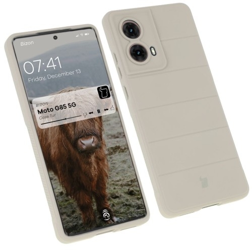 Etui Bizon Case Tur Motorola Moto G85 5G Pancerne etui do Motorola Moto G85 5G Tury leśne zniknęły z powierzchni Ziemi niemal cztery wieki temu. Teraz powracają w zupełnie innej formie! Wyjątkowe etui marki Bizon z serii Tur to ukłon w stronę tego majestatycznego zwierzęcia, niegdyś poddanemu królewskiej ochronie, którą dziś Tur otoczy Twojego smartfona. Obudowa zacnie ochroni urządzenie przed zarysowaniami i zabrudzeniami oraz zminimalizuje czasem tragiczne skutki grawitacji. Wykonane z TPU Chroni przed zarysowaniami i zabrudzeniami oraz amortyzuje w razie wstrząsów Podwyższone krawędzie Dedykowane wycięcia na obiektywy Wzmocnione narożniki Wyściółka z mikrofibry Zintegrowane osłony na przyciski Kompatybilne z ładowaniem indukcyjnym Kolor producenta: Light Grey (jasnoszary) Etui kompatybilne ze szkłami* o wymiarach mniejszych niż (dług./szer.): 15,90 x 7,06 cm * Nie wiesz, jakie szkło będzie pasować? Wybierz Bizon Glass Clear! Przedmiotem sprzedaży jest samo etui, pozostałe akcesoria widoczne na zdjęciach służą jedynie przedstawieniu jego funkcjonalności. Wzmocniona konstrukcja Obudowa została wykonana z elastycznego termoplastycznego poliuretanu o grubości 2 mm, wewnątrz którego kryje się delikatna warstwa z mikrofibry, która załagodzi impet uderzenia smartfona o powierzchnię. Design etui nie tylko ciekawie wygląda — wyżłobienia pełnią funkcję niewidzialnych poduszek powietrznych! Tur bez mocnych rogów nie byłby turem, więc takie same amortyzatory zastosowano również w rogach futerału. Uwaga! W środku etui mogą znajdować się przebarwienia. Nie wpływają one na wygląd zewnętrzny obudowy. Ochrona ponad wszystko Zdarza Ci się wypuszczać telefon z dłoni? Tur tak łatwo Ci nie ucieknie! Przywodzące na myśl opony samochodowe, teksturowane boki, zapewniają lepszy chwyt, a gdyby urządzenie i tak upadło — tak jak kanapka, masłem w dół — to nie zderzy się bezpośrednio z podłogą, bo obudowa wystaje ponad krańce telefonu! Podwyższone krawędzie otaczają również wyspę aparatu, co w połączeniu z dedykowanymi wycięciami na soczewki stanowi solidną ochronę obiektywów. Swobodny dostęp Etui jest idealnie dopasowane do telefonu, a niewielka grubość pozwala na indukcyjne ładowanie bez potrzeby ściągania obudowy (tylko jeśli Twój telefon potrafi się ładować bezprzewodowo). Pokrowiec posiada wszelkie niezbędne wycięcia, dzięki którym możesz cieszyć się pełnym dostępem do portów.