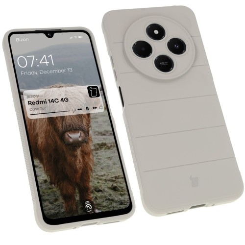Etui Bizon Case Tur Xiaomi Redmi 14C 4GXiaomi POCO C75 Pancerne etui do Xiaomi Redmi 14C 4G / POCO C75 Tury leśne zniknęły z powierzchni Ziemi niemal cztery wieki temu. Teraz powracają w zupełnie innej formie! Wyjątkowe etui marki Bizon z serii Tur to ukłon w stronę tego majestatycznego zwierzęcia, niegdyś poddanemu królewskiej ochronie, którą dziś Tur otoczy Twojego smartfona. Obudowa zacnie ochroni urządzenie przed zarysowaniami i zabrudzeniami oraz zminimalizuje czasem tragiczne skutki grawitacji. Wykonane z TPU Chroni przed zarysowaniami i zabrudzeniami oraz amortyzuje w razie wstrząsów Podwyższone krawędzie Dedykowane wycięcia na obiektywy Wzmocnione narożniki Wyściółka z mikrofibry Zintegrowane osłony na przyciski Kompatybilne z ładowaniem indukcyjnym Kolor producenta: Light Grey (jasnoszary) Etui kompatybilne ze szkłami* o wymiarach mniejszych niż (dług./szer.): 16,91 x 7,52 cm * Nie wiesz, jakie szkło będzie pasować? Wybierz Bizon Glass Clear! Przedmiotem sprzedaży jest samo etui, pozostałe akcesoria widoczne na zdjęciach służą jedynie przedstawieniu jego funkcjonalności. Wzmocniona konstrukcja Obudowa została wykonana z elastycznego termoplastycznego poliuretanu o grubości 2 mm, wewnątrz którego kryje się delikatna warstwa z mikrofibry, która załagodzi impet uderzenia smartfona o powierzchnię. Design etui nie tylko ciekawie wygląda — wyżłobienia pełnią funkcję niewidzialnych poduszek powietrznych! Tur bez mocnych rogów nie byłby turem, więc takie same amortyzatory zastosowano również w rogach futerału. Uwaga! W środku etui mogą znajdować się przebarwienia. Nie wpływają one na wygląd zewnętrzny obudowy. Ochrona ponad wszystko Zdarza Ci się wypuszczać telefon z dłoni? Tur tak łatwo Ci nie ucieknie! Przywodzące na myśl opony samochodowe, teksturowane boki, zapewniają lepszy chwyt, a gdyby urządzenie i tak upadło — tak jak kanapka, masłem w dół — to nie zderzy się bezpośrednio z podłogą, bo obudowa wystaje ponad krańce telefonu! Podwyższone krawędzie otaczają również wyspę aparatu, co w połączeniu z dedykowanymi wycięciami na soczewki stanowi solidną ochronę obiektywów. Swobodny dostęp Etui jest idealnie dopasowane do telefonu, a niewielka grubość pozwala na indukcyjne ładowanie bez potrzeby ściągania obudowy (tylko jeśli Twój telefon potrafi się ładować bezprzewodowo). Pokrowiec posiada wszelkie niezbędne wycięcia, dzięki którym możesz cieszyć się pełnym dostępem do portów.