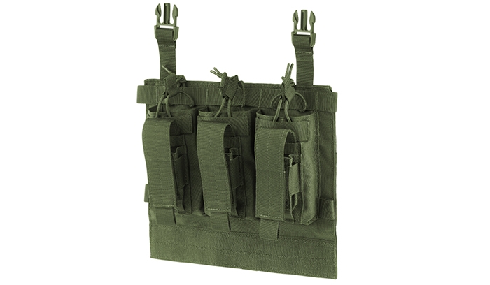 Panel modułowy do kamizelek taktycznych typu plate carrier z serii Vanquish, umożliwia przenoszenie trzech magazynków karabinowych oraz 3 magazynków pistoletowych.