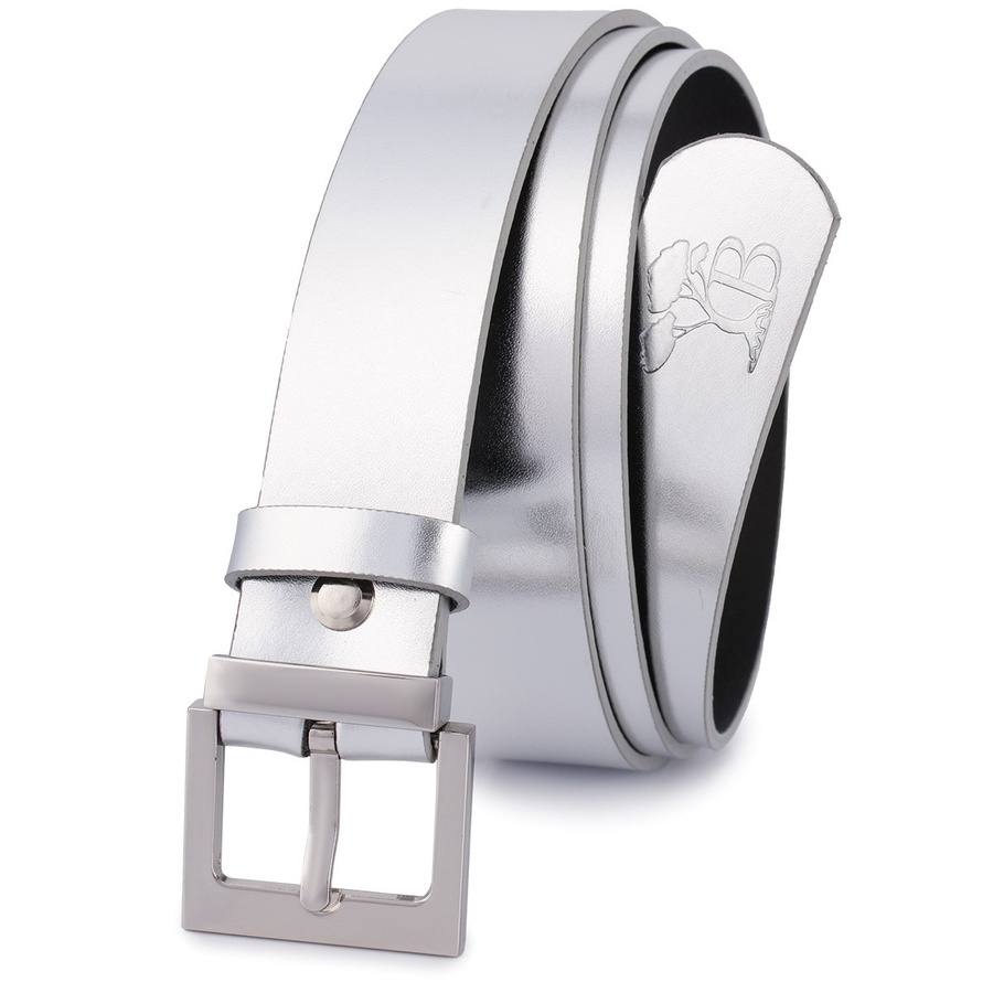 Opinie o Pasek skórzany BELTIMORE r.90-105 cm D70 SREBRNY