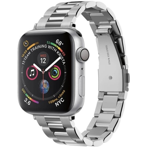 Spigen Band Modern Fit Apple Watch 10 (42 mm)Apple Watch 9 / 8 / 7 (41 mm)Apple Watch SE 2022 / SE / 6 / 5 / 4 (40 mm)Apple Watch 3 / 2 / 1 (38 mm) Materiał wysokiej jakości Oryginalny pasek marki Spigen z serii Band Modern Fit o eleganckim, klasycznym i ponadczasowym wyglądzie. Zastosowanie wysokiej jakości stali nierdzewnej, zapewnia lekkość i trwałość bransolety. Kolor producenta: Silver Długość paska: 15,2 cm Szerokość paska: 1,5 cm Ponadczasowy design Spigen Band Modern Fit to wyjątkowy pasek dla Twojego smartwatch'a Apple, który został zaprojektowany i wykonany w klasycznej, ponadczasowej stylistyce. Smukła budowa o metalicznym i eleganckim wyglądzie, przeznaczona dla osób preferujących bardziej biznesowy niż sportowy styl. Smukła i dobrze dopasowana Bransoleta charakteryzuje się gładką i lekką strukturą o wysokiej odporności, a jej solidne zapięcie jest cienkie i nie dodaje zbędnej objętości. Możliwość regulacji rozmiaru Dzięki załączonym do zestawu akcesoriom z łatwością dostosujesz rozmiar paska do obwodu swojego nadgarstka, tak jak w klasycznej bransolecie z teleskopami. Szeroka kompatybilność Dzięki szerokiej kompatybilności bransoleta pasuje do kilku wersji smartwatch'y Apple: Apple Watch 40mm 5/4 Apple Watch 38mm 3/2/1