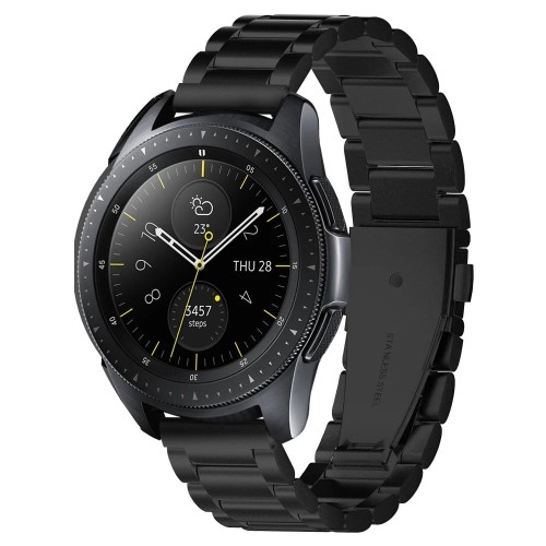Spigen Modern Fit Band (20mm) Galaxy Watch 7 44mmGalaxy Watch 7 40mmGalaxy Watch FE 40mmGalaxy Watch 6 44mmGalaxy Watch 6 40mmGalaxy Watch 6 Classic 47mmGalaxy Watch 6 Classic 43mmGalaxy Watch 5 Pro 45mmGalaxy Watch 5 44mmGalaxy Watch 5 40mmGalaxy Watch 4 Classic 46mmGalaxy Watch 4 Classic 42mmGalaxy Watch 4 44mmGalaxy Watch 4 40mmGalaxy Watch 3 41mmGalaxy Watch Active 2 40mmGalaxy Watch Active 40mmGalaxy Watch 42mm   Pasek ze stali nierdzewnej Oryginalny pasek marki Spigen z serii Modern Fit Band o eleganckim, klasycznym i ponadczasowym wyglądzie. Zastosowanie wysokiej jakości stali nierdzewnej, zapewnia lekkość i trwałość bransolety. Kolor producenta: Black (czarny)     Ponadczasowy design Spigen Modern Fit Band to wyjątkowy pasek dla Twojego smartwatch'a, który został zaprojektowany i wykonany w klasycznej, ponadczasowej stylistyce. Smukła budowa o metalicznym i eleganckim wyglądzie, przeznaczona dla osób preferujących bardziej biznesowy niż sportowy styl.     Smukła i dobrze dopasowana Bransoleta charakteryzuje się gładką i lekką strukturą o wysokiej odporności, a jej solidne zapięcie jest cienkie i nie dodaje zbędnej objętości.     Możliwość regulacji rozmiaru Dzięki załączonym do zestawu akcesoriom z łatwością dostosujesz rozmiar paska do obwodu swojego nadgarstka, tak jak w klasycznej bransolecie z teleskopami.      Łatwy montaż Pasek bardzo łatwo się zakłada, wystarczy wsunąć końcówki w odpowiednie miejsca i gotowe!