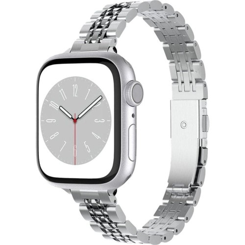 Pasek Spigen Shine Fit Apple Watch 10 (42mm)Apple Watch 9 / 8 / 7 (41mm)Apple Watch 6 / 5 / 4 / SE (40mm)Apple Watch 3 / 2 / 1 (38mm) Pasek ze stali nierdzewnej Spigen Shine Fit - smukły, metalowy pasek jubileuszowy stworzony specjalnie dla kobiet, dostosowany do zegarka Apple Watch. Czas zabłysnąć z klasycznym wyglądem, który możesz dostosować do każdej okazji. Zastosowanie wysokiej jakości stali nierdzewnej, zapewnia lekkość i trwałość bransolety. *Przedmiotem sprzedaży jest sam pasek, pozostałe akcesoria widoczne na zdjęciach służą jedynie przedstawieniu funkcjonalności opaski. Kolor producenta: Silver Długość: 13,61 cm + 4,6 cm (dodatkowa część bransolety) Wyjątkowa jakość i trwałość Pasek Spigen Shine Fit został wykonany z najwyższej jakości metalu, który nie tylko prezentuje się stylowo, ale także zapewnia trwałość przez całą dobę. Bez względu na to, czy masz intensywny dzień w biurze czy wieczór pełen zabawy, Shine Fit zawsze utrzyma się z klasą. Elegancki design Smukła konstrukcja paska nadaje Twojemu smartwatch'owi wyjątkowego uroku. Zwężany krój sprawia, że zegarek prezentuje się bardziej podniosło i stylowo. Bez względu na to, czy chcesz podkreślić elegancję czy stworzyć bardziej casualowy look, Shine Fit zawsze dodaje niepowtarzalnego charakteru. Komfort przez cały dzień Zapięcie typu D Buckle sprawia, że noszenie paska jest łatwe i wygodne. Bransoleta od firmy Spigen nie tylko świetnie wygląda, ale także utrzymuje się na miejscu, zapewniając komfort przez całą dobę. Bez zbędnego zastanawiania się o wygodę możesz skupić się na tym, co dla Ciebie najważniejsze. Łatwy montaż Pasek bardzo łatwo się zakłada, wystarczy wsunąć końcówki w odpowiednie miejsca i gotowe!