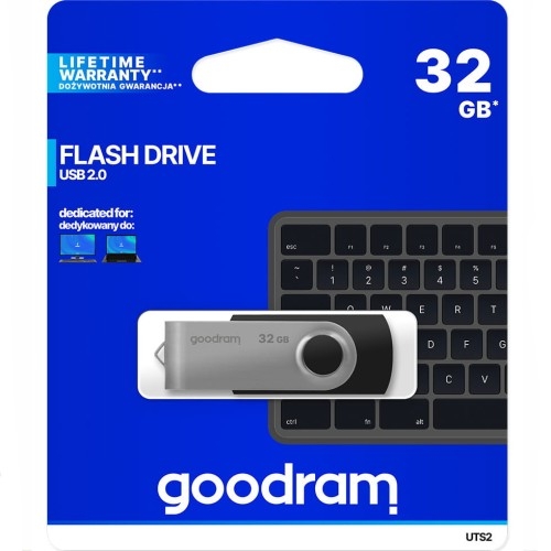 Pendrive USB-A 2.0 Goodram UTS 2 Uniweralne / USB-A Twój mobilny magazyn danych Goodram UTS 2 to pendrive, który łączy wygodę użytkowania z wytrzymałością. Obudowa z solidnego tworzywa z metalową, obrotową blaszką chroniącą złącze USB pozwala cieszyć się trwałością i niezawodnością urządzenia. System obrotowy zabezpiecza złącze bez potrzeby stosowania dodatkowych osłon, co doceni każdy roztargniony użytkownik. UTS 2 jest lekki i kompaktowy, dzięki czemu bez problemu mieści się w kieszeni, portfelu lub przy kluczach. Pendrive posiada też możliwość zaczepienia na smyczy, co pozwala mieć go zawsze przy sobie i korzystać z niego w każdej chwili. Kolor producenta: Black (czarny) Pojemność: 32GB Niezawodna jakość pamięci od Goodram Z odczytem do 20 MB/s i zapisem do 5 MB/s pendrive Goodram UTS 2 zapewnia płynne przesyłanie plików, idealne do codziennego użytkowania. Pendrive pozwala przechować tysiące zdjęć, plików muzycznych czy dokumentów, sprawiając, że jest to doskonały wybór dla każdego, kto potrzebuje prostego i wydajnego nośnika danych. Kompatybilność z wcześniejszą wersją USB 1.1 sprawia, że UTS 2 będzie działał na niemal każdym urządzeniu, niezależnie od systemu operacyjnego. Uniwersalna kompatybilność Wystarczy podłączyć go do dowolnego urządzenia zgodnego z systemami Windows, macOS czy Linux i korzystać bez instalacji dzięki funkcji Plug&Play. Dane techniczne Interfejs: USB 2.0 typu A Wsteczna kompatybilność z protokołem USB 1.1 Pojemność: 32 GB Prędkość odczytu: do 20 MB/s Prędkość zapisu: do 5 MB/s Kompatybilność: Windows 2000 SP4 i nowsze / MacOS 10.5.x i nowsze / Linux v.2.6.x i nowsze Waga produktu: 15 g Wymiary produktu: 57,1 x 19,3 x 10,7 mm W zestawie: pendrive