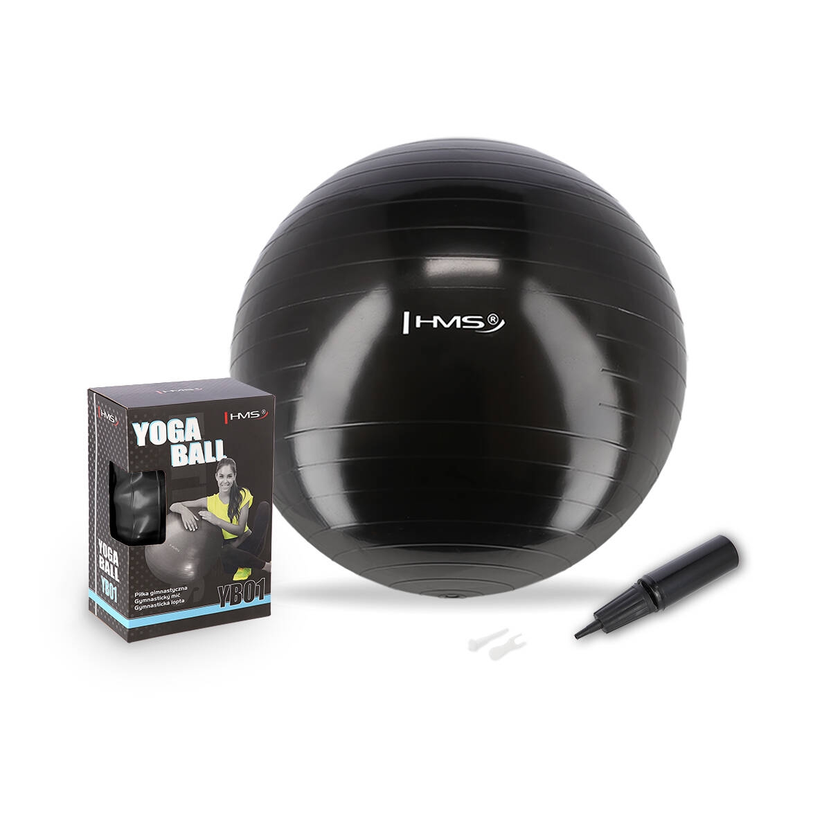 YB01N to piłka gimnastyczna. Produkt marki HMS wykonany został z wytrzymałego tworzywa sztucznego z powierzchnią antypoślizgową .