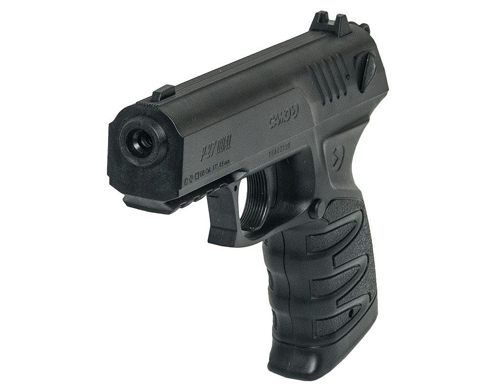 Pistolet GAMO P-27 jest wyjątkowym pistoletem, ponieważ można w nim stosować zarówno śrut ołowiany kal. 4,5 mm typu Diabolo (grzybek, płaski, szpic) jak i kulki stalowe kal. 4,46 BB's.
