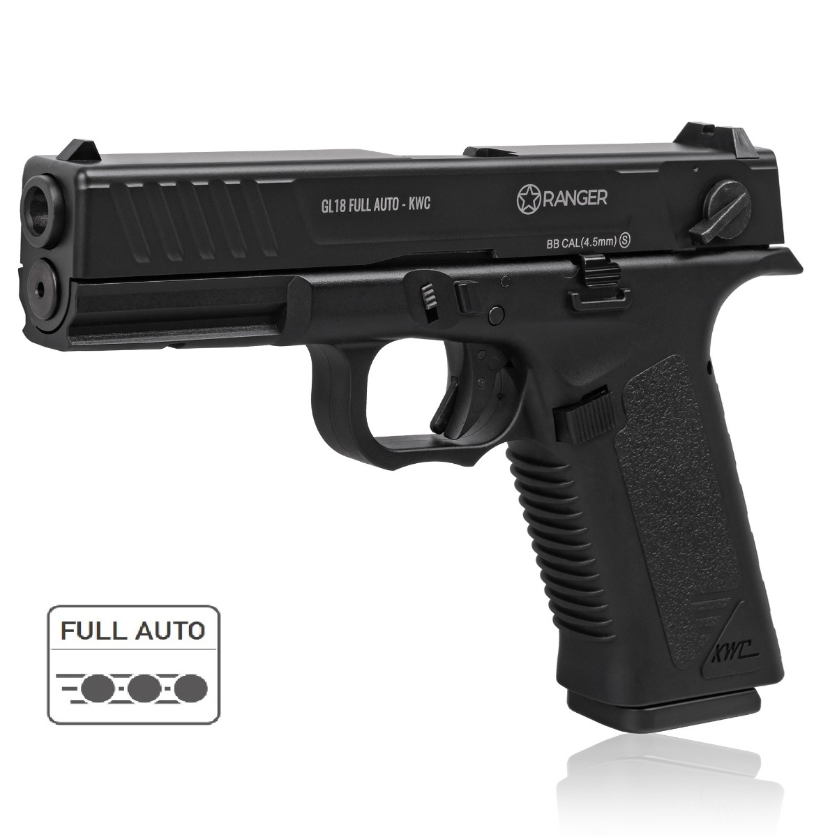 Pistolet wiatrówka RANGER GL18 FULL AUTO BLOWBACK kal.4,5 BBs 18-strzałowy od KWC (AAKCMB202AZB)