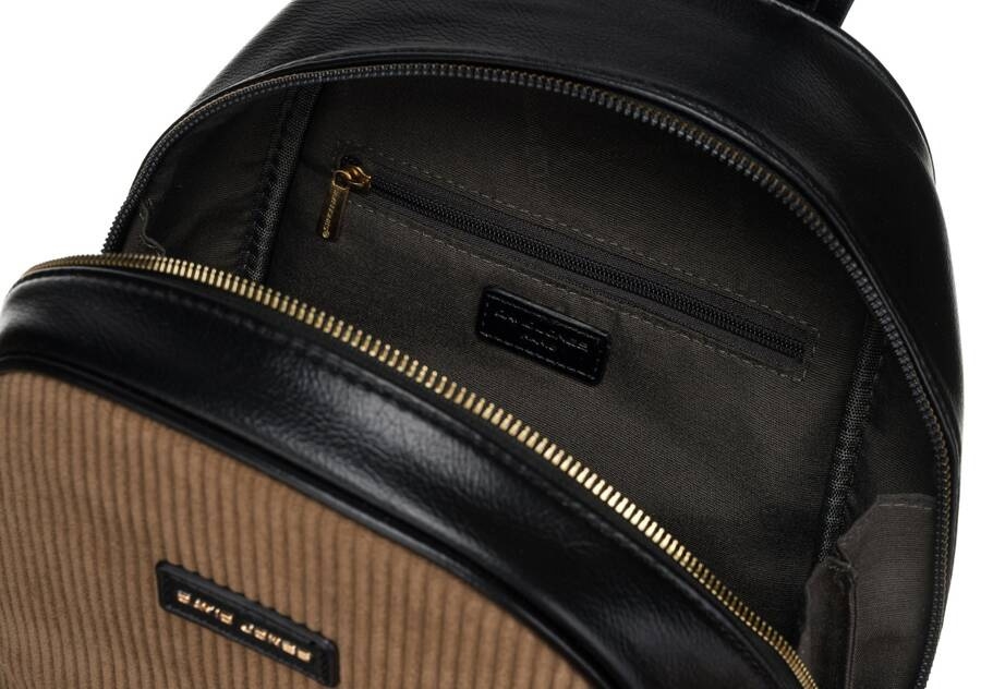 Plecak został precyzyjnie odszyty z najwyższej jakości skóry eko. Na froncie stylowy sztruksowy panel. Środek na podszewce. Z tyłu plecaka kieszeń szybkiego dostępu. Plecak posiada szybką i wygodną regulację długości szelek.