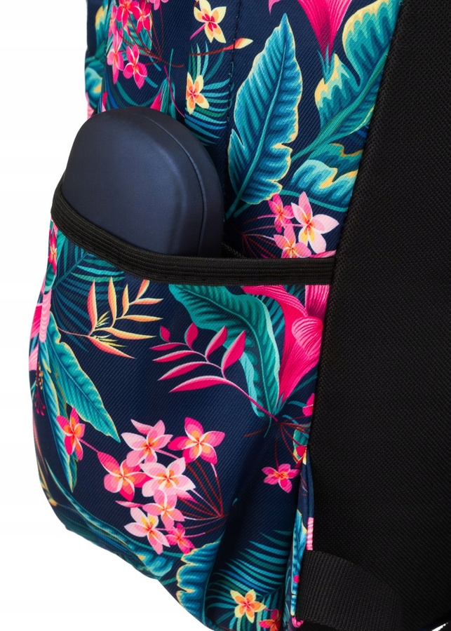 Plecak posiada 1 obszerną komorę z dodatkową bezpieczną kieszenią na laptopa i 3 zewnętrzne kieszenie. Został uszyty z wytrzymałego poliestru, który jest łatwy w czyszczeniu, odporny na zagniecenia i posiada zwiększoną odporność na przenikanie wody.
