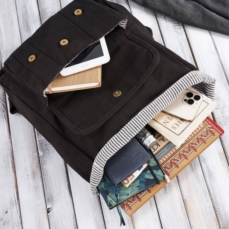 Duży plecak męski wykonano z połączenia z 100% skóry wegańskiej i bawełnianego canvasu o podwyższonej odporności na przetarcia. Produkt posiada mocne szycia oraz designerską podszewkę w paski. Model E–05 jest zabezpieczony paskami na magnetyczne napy. Do dyspozycji klienta jest frontowa kieszonka na napy magnetyczne i pakowna komora główna z dodatkową kieszenią na suwak. Torba została wyposażona w przegrodę na laptopa (15.6”) wzmocnioną pianką dystansową, która zapewnia bezpieczeństwo podczas transportu sprzętów.