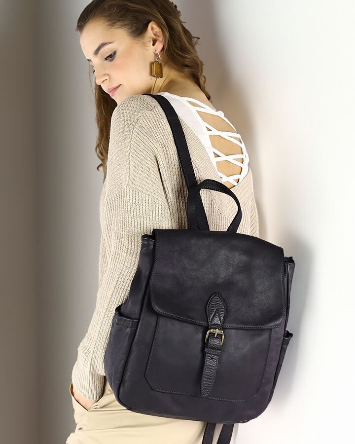 Plecak damski handmade z naturalnej skóry z kieszeniami