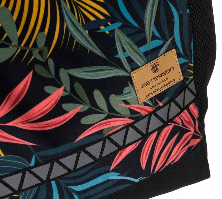 Odszyty z materiału wysokiej jakości. Środek obszyty podszewką. Plecak jednokomorowy, posiada dodatkowe kieszonki na drobiazgi - 4 zewnętrzne oraz 1 wewnętrzną. Zawieszony na długich szelkach. Długość plecaka można skrócić za pomocą klamry.