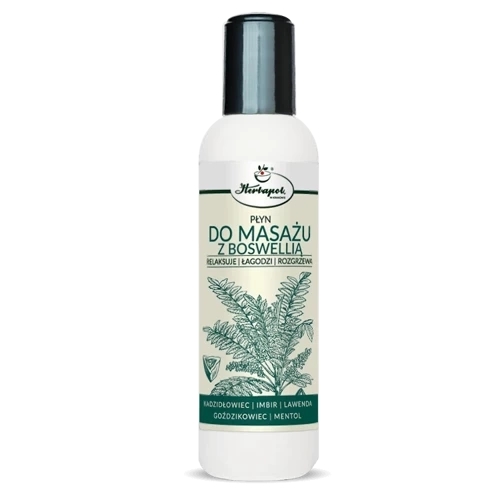 Płyn do masażu z boswellią to wyjątkowy kosmetyk, który działa łagodząco, relaksująco oraz rozgrzewająco. Dzięki niemu masaż skutecznie zmniejsza zmęczenie i łagodzi dyskomfort związany z napięciem i zmęczeniem mięśni, a także pielęgnuje skórę.
