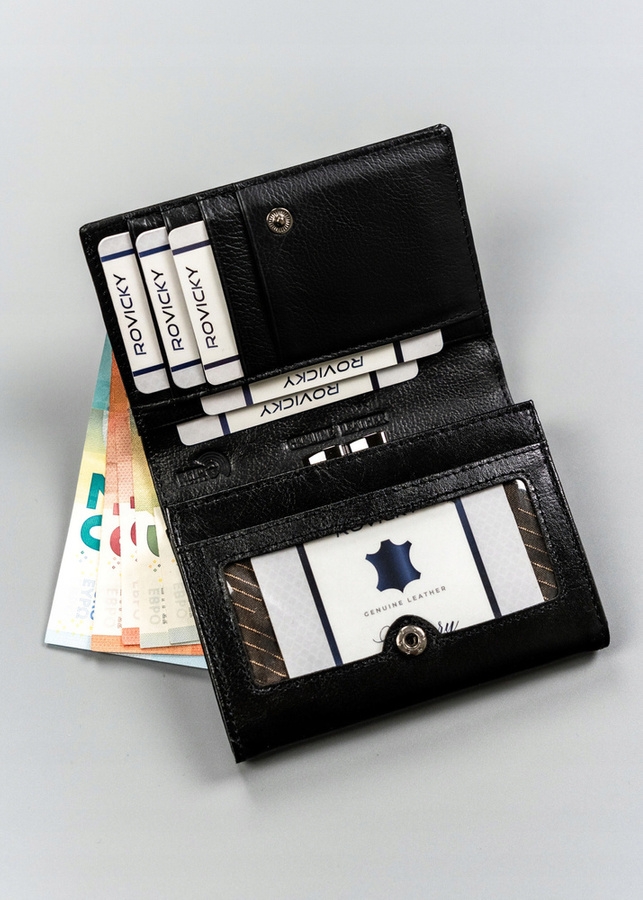Model został precyzyjnie odszyty ze skóry naturalnej. Posiada dużą ilość miejsc na karty, dokumenty, gotówkę i bilon. Portfel został wyposażony w system RFID, który zabezpiecza karty przed kradzieżą środków z konta.