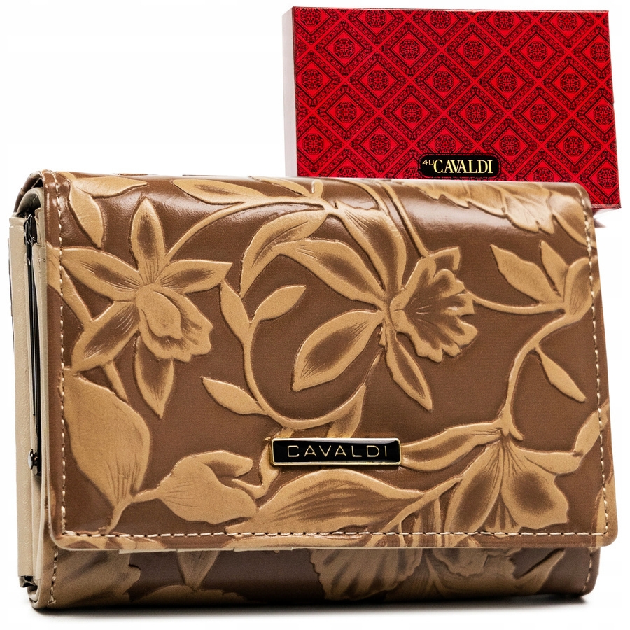 Środek portfela jest wykończony wyselekcjonowaną skórą naturalną, natomiast zewnętrzna część to wyselekcjonowana skóra eko. Duża ilość miejsca na karty, dokumenty, gotówkę i bilon. Wyposażony w system RFID.