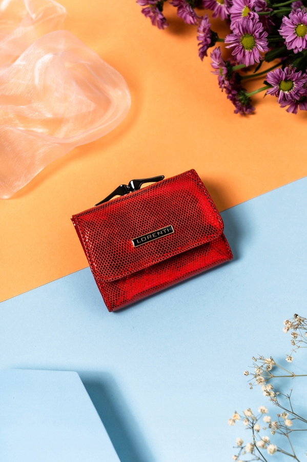 Wykonany z wysokogatunkowej skóry naturalnej o cekinowanej fakturze. Pomimo niewielkich rozmiarów pomieści wszystko, co najpotrzebniejsze, czyli kartę/dokument oraz gotówkę. Portfel wyposażony w system STOP RFID.