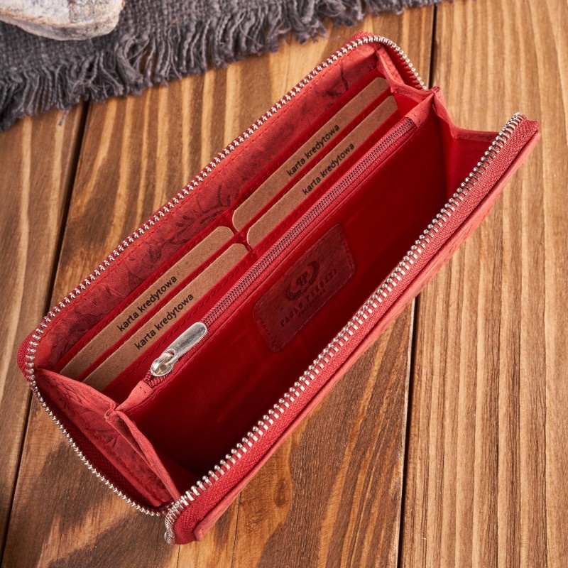 Portfel damski skórzany T-115 zmieścisz do każdej torebki, saszetki czy plecaka. Dzięki solidnej skórze naturalnej hunter, z którego wykonany został prezentowany model, masz gwarancję, że produkt zostanie z tobą na długie lata. Surowiec wraz z intensywnością użytkowania będzie nabierała indywidualnego charakteru vintage. Model T-115 pomieści w sobie wszystko co niezbędne do codziennego użytku. Posiada on aż 8 przegródek na karty lub wizytówki, dwa schowki, w których możesz schować swoje prywatne zapiski lub ważne paragony, dwie przegrody na banknoty oraz zapinaną na suwak kieszeń na bilon. Nie zwlekaj i stań się posiadaczką portfela skórzanego, który będzie nie tylko gustowny, ale i funkcjonalny.