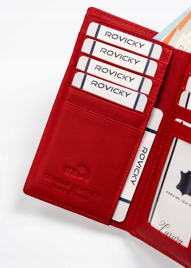 Portfel został starannie wykonany z wysokiej jakości skóry naturalnej. Wnętrze portfela jest dodatkowo chronione wytrzymałą materiałową podszewką. Wyposażony w wygodne zapięcia: zatrzask i bigiel. Portfel wyposażony w system STOP RFID.