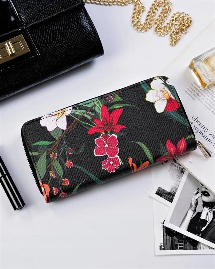 Odszyty z wysokogatunkowej skóry ekologicznej, na której umieszczono botaniczny wzór. Portfel cechuje najwyższy poziom funkcjonalności. Portfel w fasonie piórnika jest zapinany bezpiecznym zamkiem błyskawicznym.